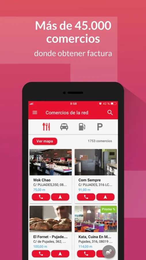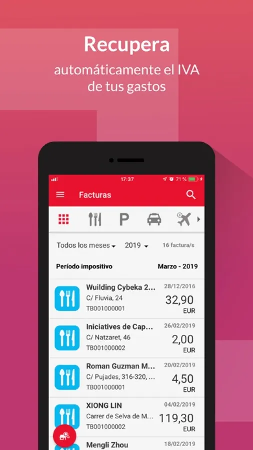 DevoluIVA es el único servicio con el que puedes recuperar el 100% del IVA al generar automáticamente facturas electrónicas de tus gastos profesionales. Con esta app, puedes localizar las más de 400.000 cafeterías, restaurantes, gasolineras, parkings, papelerías, supermercados, peajes y taxis de la red DevoluIVA en los que obtendrás, automáticamente, facturas electrónicas de tus gastos. Si no encuentras tus establecimientos habituales, nosotros lo afiliaremos a la red DevoluIVA.