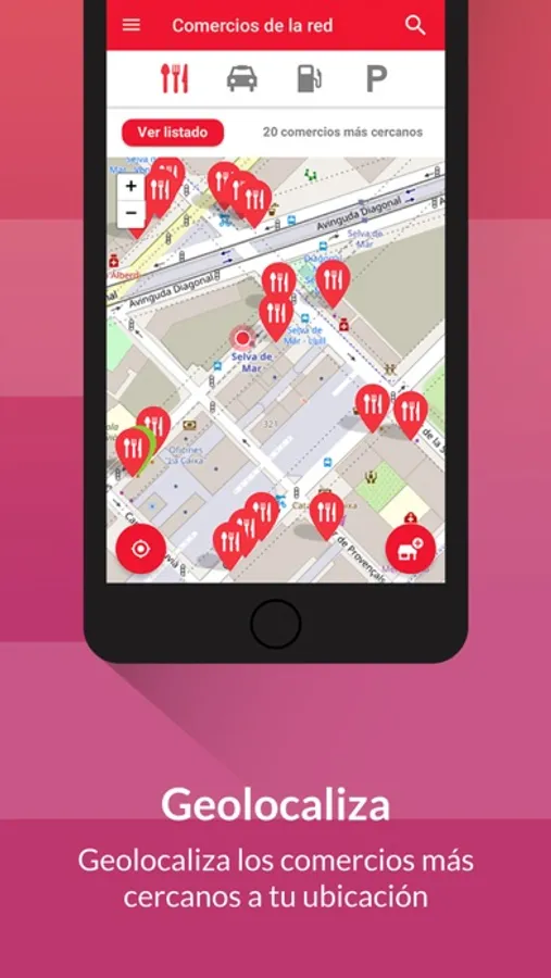 - Buscador de comercios de la red DevoluIVA por geolocalización o búsqueda por dirección.