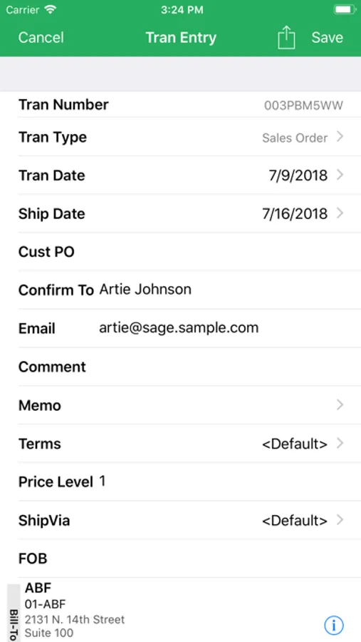 • Full roundtrip sync of Transactions with Sage 100 ERP