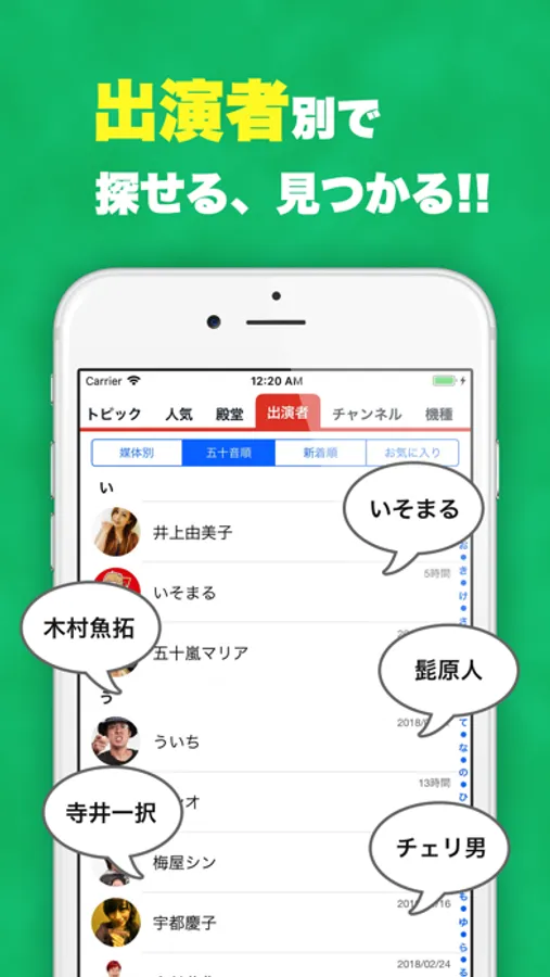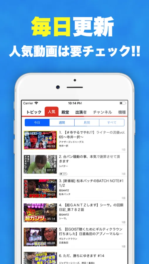 新着順、機種別、出演者別、チャンネル別でカンタン検索!