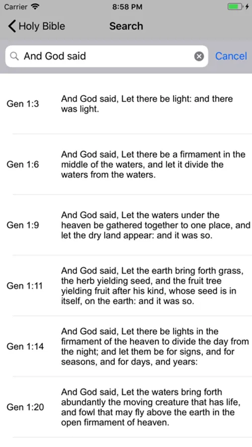 Carry with you in your iPhone, iPod Touch and iPad, the Holy Bible. You don't need internet connection to use it, just download and install it. And there is a search engine integrated, useful when you forget where is a verse.