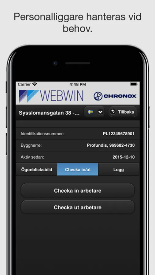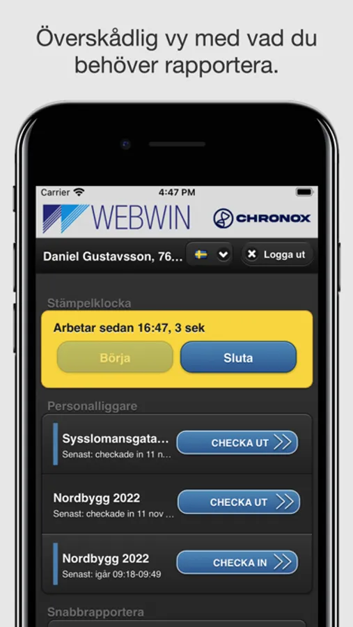 Denna app används även för användare som ska stämpla in i personalliggare.