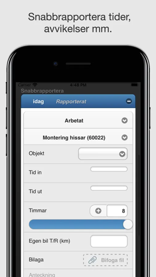* Snabbrapportering. Håller koll på vilka dagar du ska rapportera