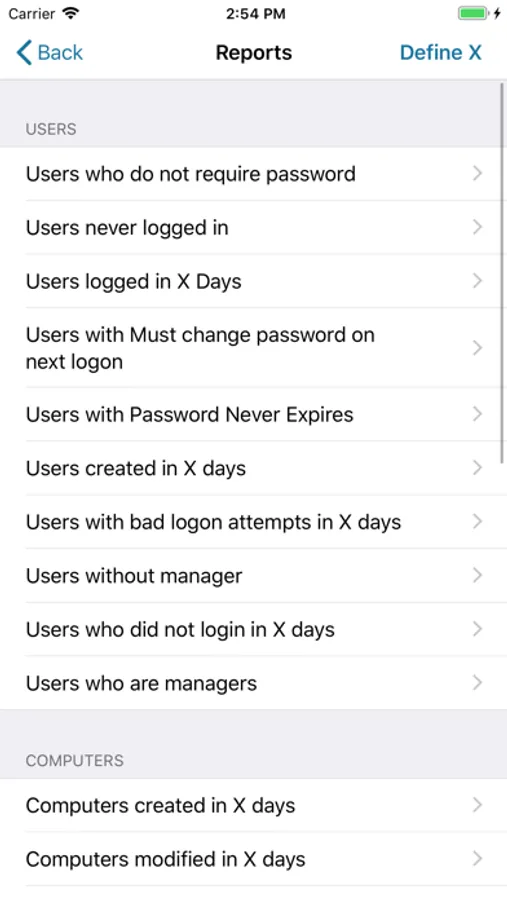The app is free to download. Certain features such as managing "Groups" or "Non Admin Users" require one time upgrade to unlimited version. Evaluate features within your network, with a fully functional FREE app that manages Contacts, Computers, and protected group users like Domain Administrators.