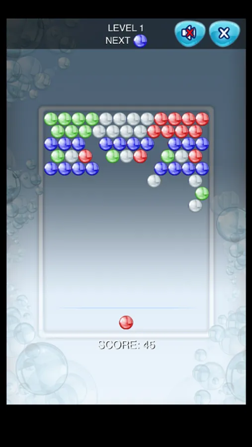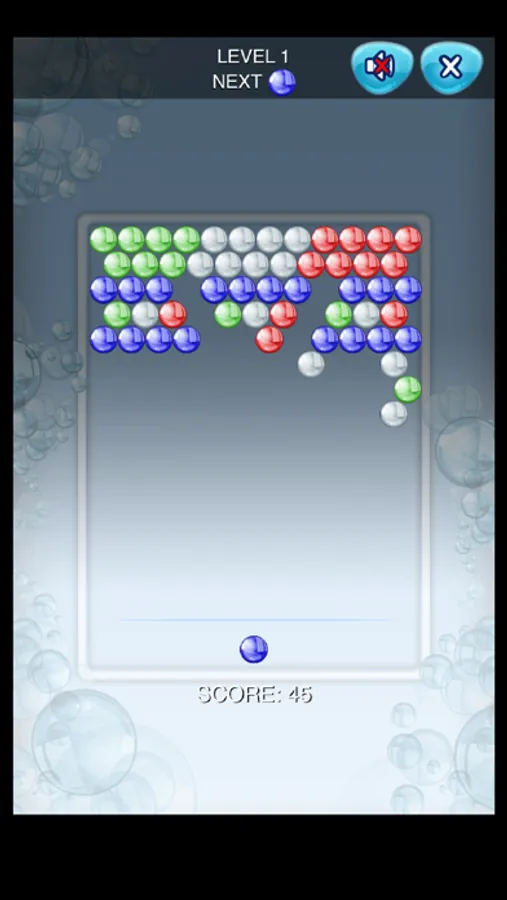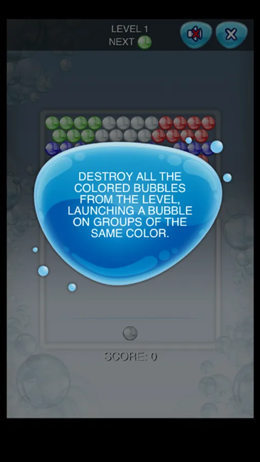 Tap the screen to shoot the new bubbles up. Match 3 bubbles of the same color in a row to make them disappear. Once you've cleared all of the bubbles on the screen, you can advance to the next level.