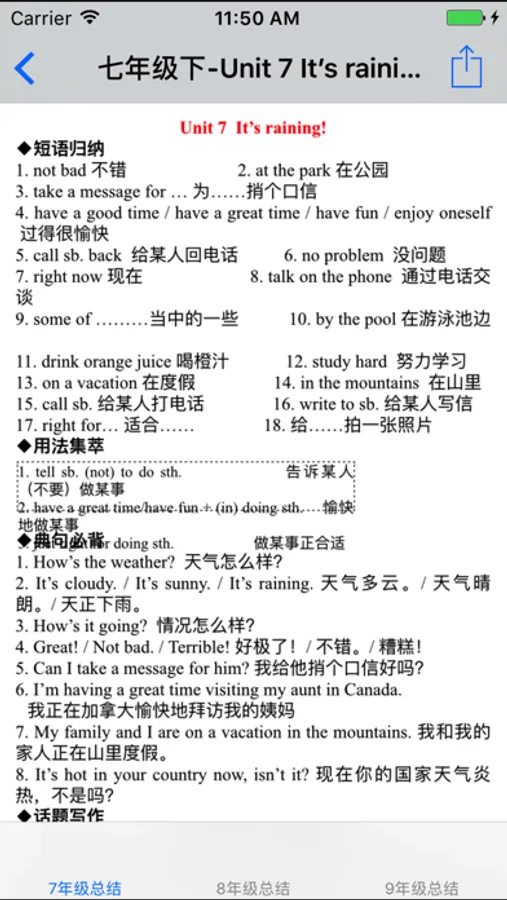 《初中英语7~9年级笔记|知识点|习题大全》是一个帮助初中生朋友总结英语知识点的好应用。