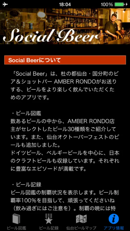 「Social Beer」は、杜の都仙台・国分町のビア&ショットバー AMBER RONDOがお送りする、ビールをより楽しく飲んでいただくためのアプリです。