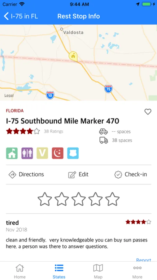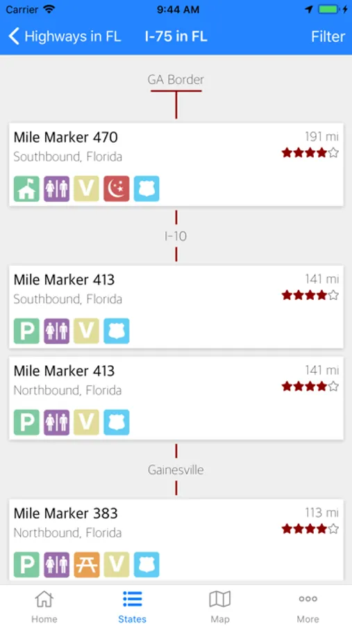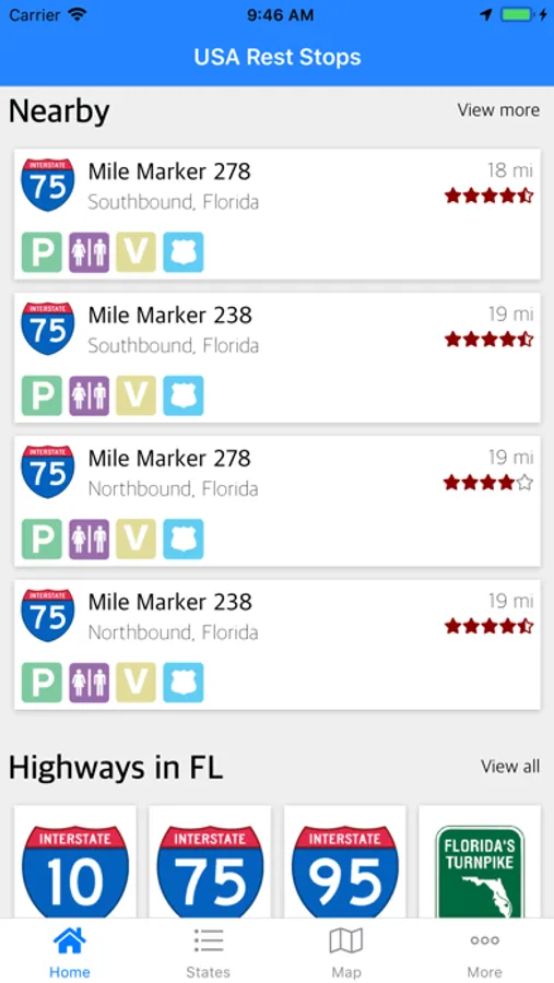This app will help you easily find the nearest rest stop on the US, including Interstates, US highways, and state highways! You can browse by state and interstate or you can browse on a map. This app will show you the traditional rest areas as well as welcome centers and service plazas on turnpikes.