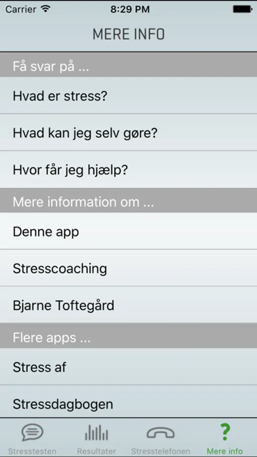Appen indeholder også en mulighed for at kontakte en stresscoach, hvis du har nogle spørgsmål til din stress.