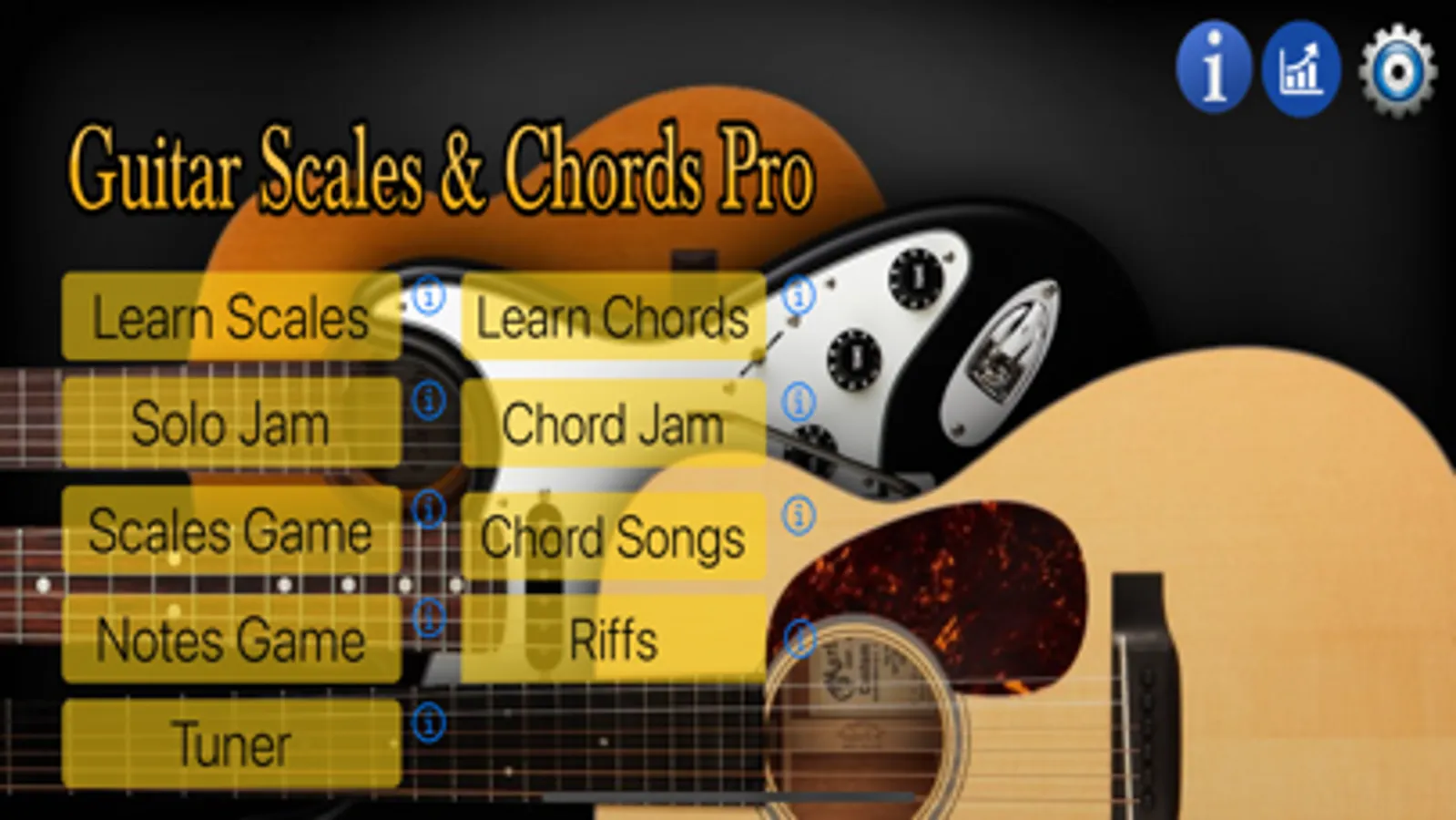 * Scales and Chords are learned fast by viewing them as a reference or challenging yourself in interactive games.