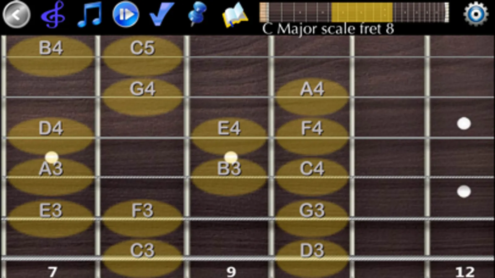 View quickly the notes in a key at any position when you select a scale from the extensive list.