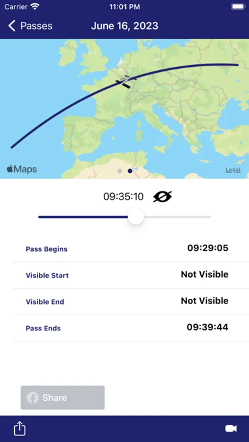 Keeping track of when the space station is visible isn’t practical to do manually. Throughout the year for most inhabited areas of earth there will be periods of a week or two when the space station will be visible daily. In between these visible ‘runs’ there can be a break of visible passes for a period of several weeks. You don’t want to have to manually monitor when passes are due to occur next so Sat Seeker calculates precise pass details based on your location and then notifies you automatically. Shortly before an upcoming pass Sat Seeker displays a notification so you will never miss a visible pass if you fail to check upcoming pass times.