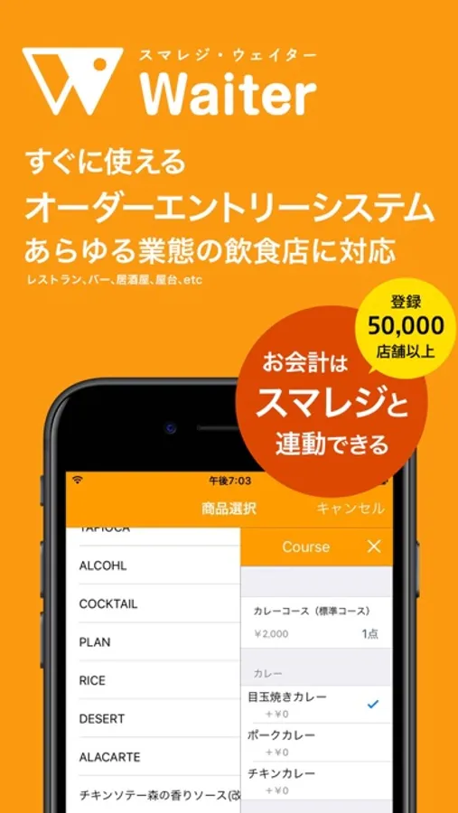 ウェイターの注文データがスマレジに入るので、