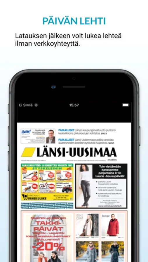 Pidä uutiset aina mukanasi ja lataa päivän lehti -sovellus.
