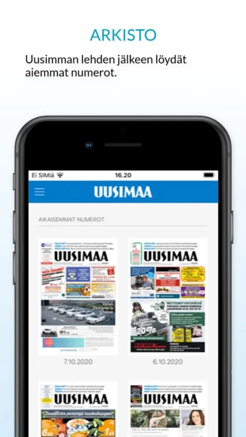 Sovellus sisältää uusimman julkaistun näköislehden sekä lehtiarkiston ja liitteet. Voit lukea sovellukseen lataamiasi lehtiä myös ilman verkkoyhteyttä missä vain ja milloin haluat.