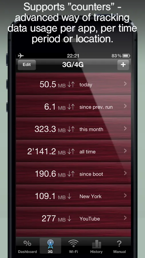 This app helps you to stay within the limits of your mobile internet data plan limit (LTE/4G/3G). You will save hundreds of $$$ with this app! That's why it's consistently listed among the Top 10 Most Popular Utilities in over 56 countries worldwide.