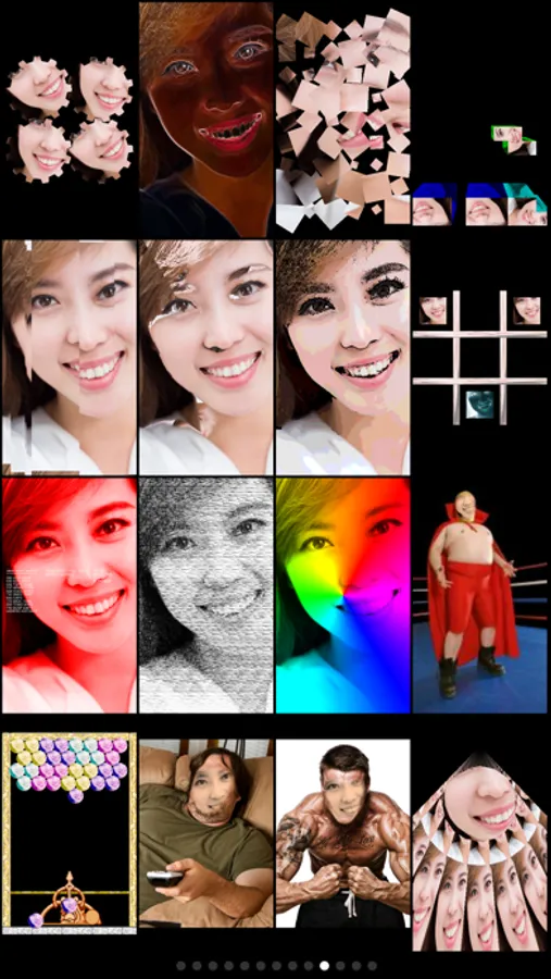 Effects include: maze, engraving, cube puzzle, jewel, bouncing balls, glasses, TV, pachinko, waving flag, sketch, tunnel, mosaic, puzzle, hue shift, motion blur, tile, emboss, spinning cube, x-ray, collage, night vision, halftone, light tunnel, and many more. There's also 40 vintage camera effects for a retro feel.