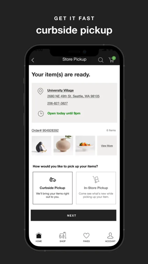 • On the go? Place your kitchen accessories, home products, or gift orders online and pick up at your nearest Crate & Barrel store for a fast and convenient experience.