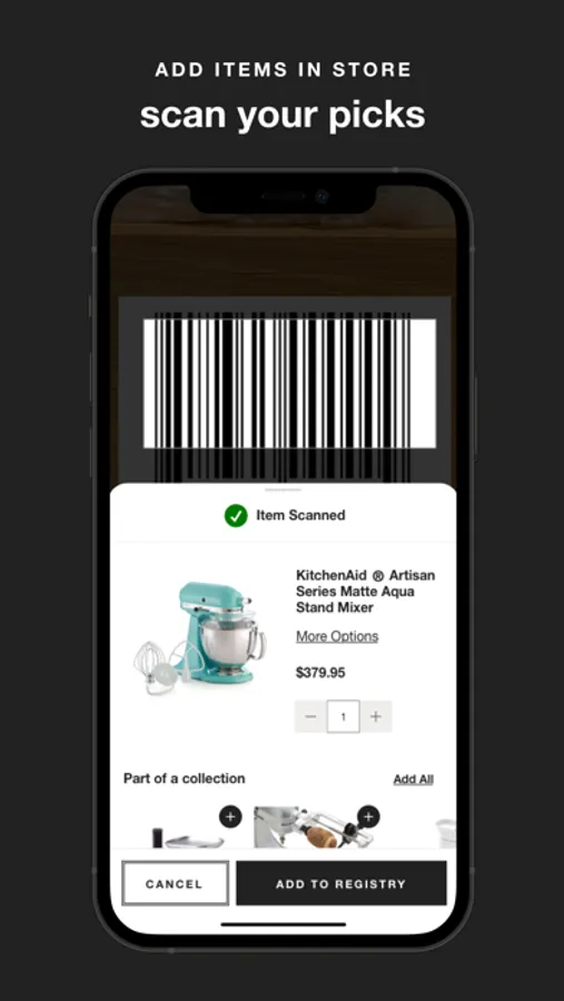 • Scan barcodes in stores to add items to your wedding registry, baby registry, gift registry, or wishlist.