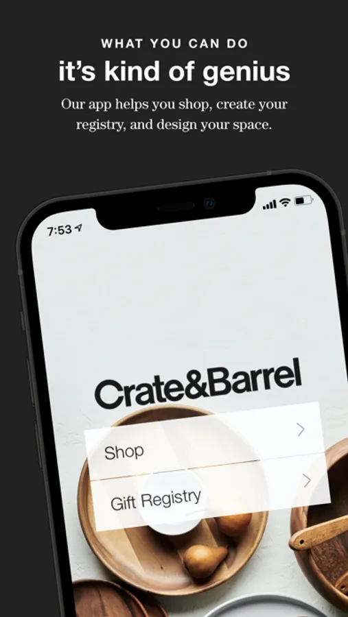 The Crate and Barrel Home Decor, Furniture & Gift Registry app keeps everything you love about our stores—from our unique housewares and quality modern furniture to our extensive selection of kitchen appliances and seasonal decor—right within reach on your mobile device. Shop our distinctive collection of products for your house or apartment, manage your wedding or baby registry, get expert information on furniture and home design or simply browse for inspiration.