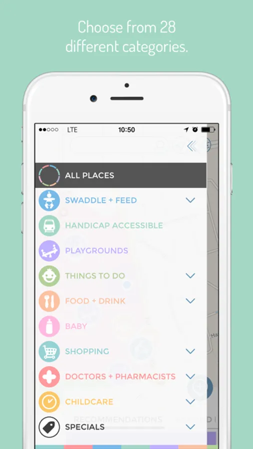 Our app shows you places to visit with your child on a map. You can search for places in different categories or based on your location. Searching in a certain city comes in really handy if you e.g. plan a family trip.
