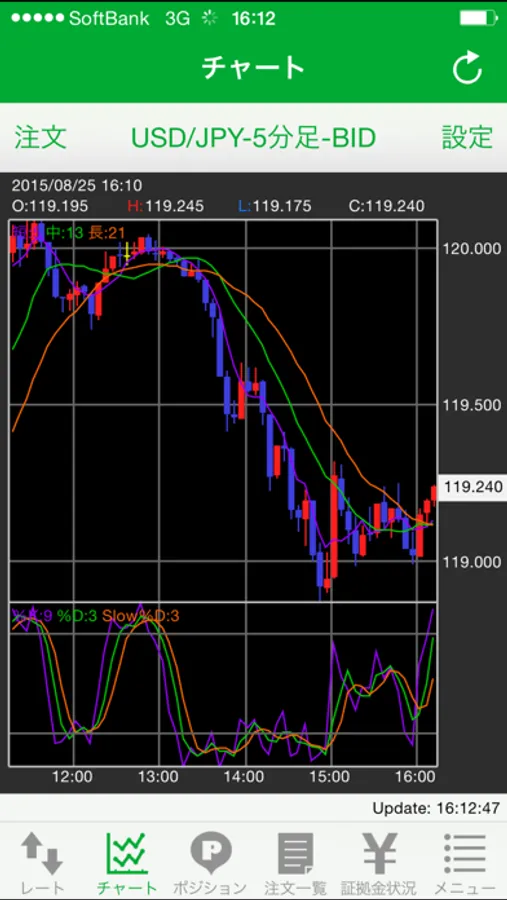 2.チャート表示(単純移動平均、ボリンジャーバンド、ストキャスティクス、RSI、MACD)