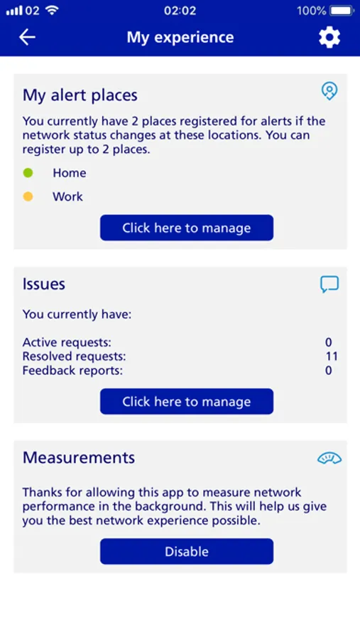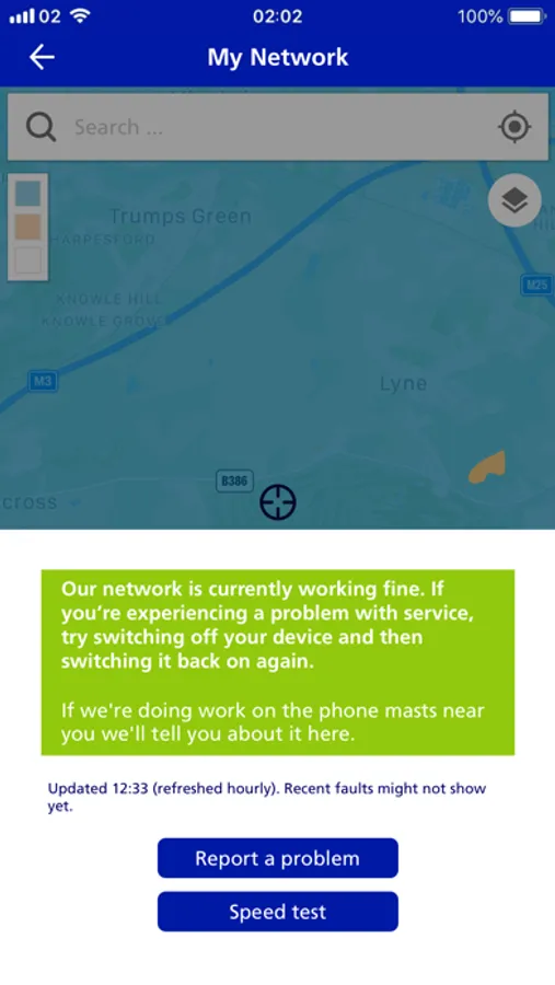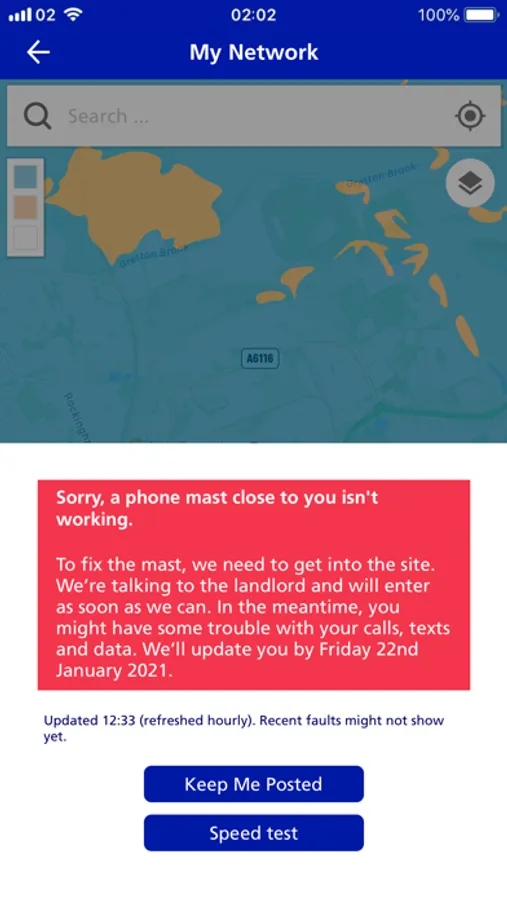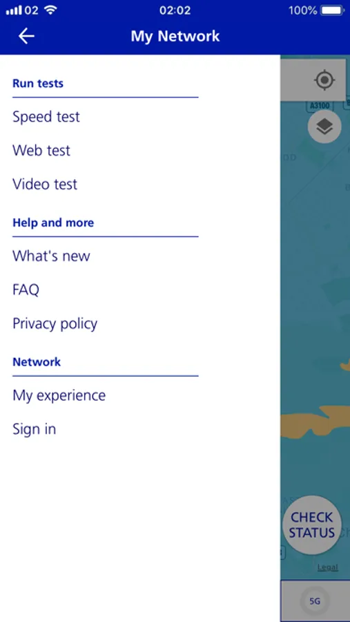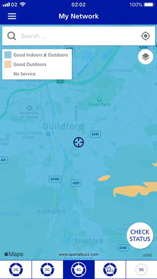 • Check the network status in your location, by tapping the ‘Check’ button on the map.