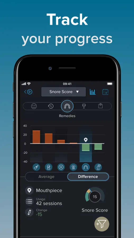 SnoreLab lets you log and track lifestyle factors and any snoring remedies so you can see how they impact your snoring.