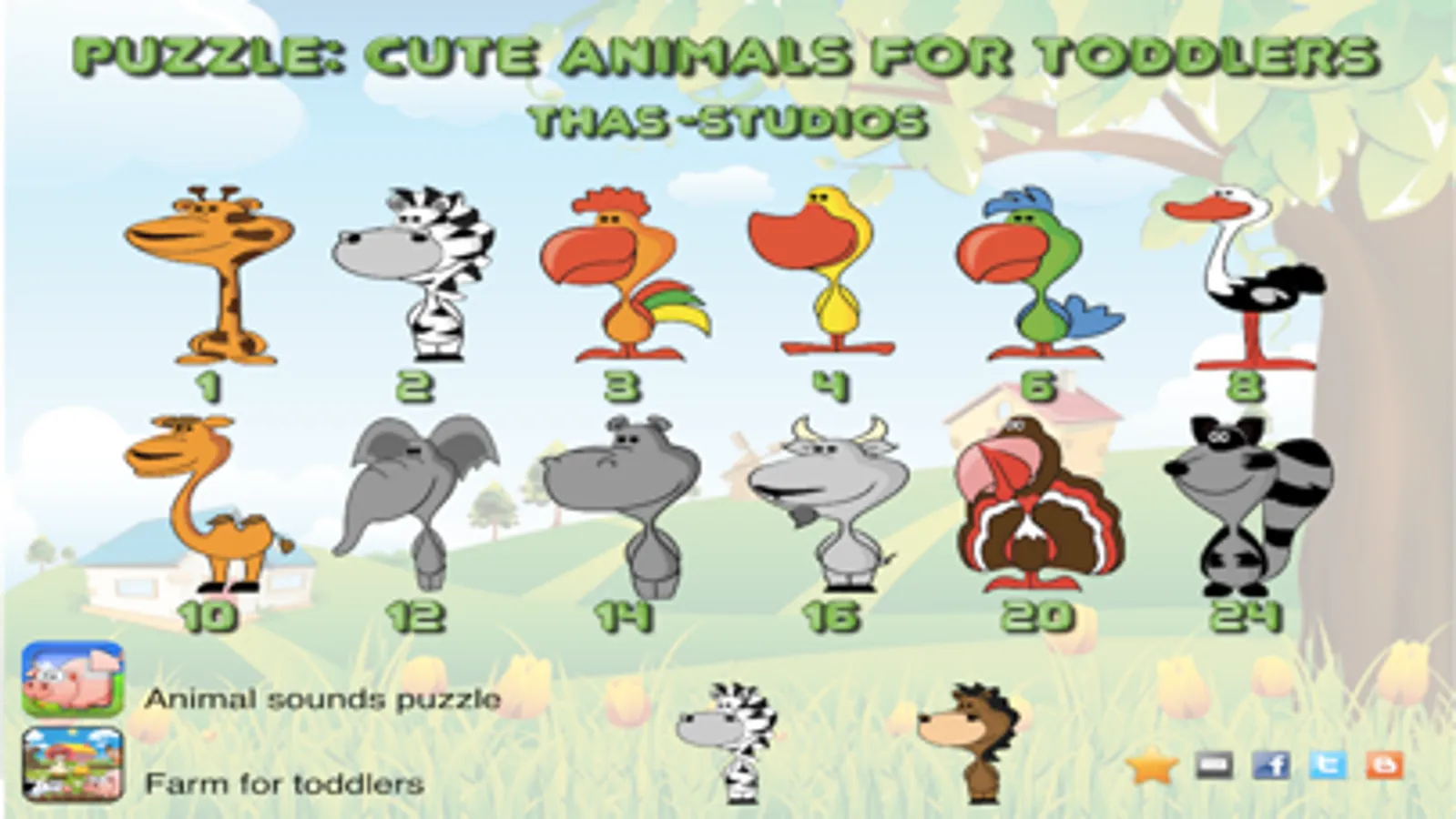 It features cute artwork, with 24 different animals. If that is not enough, you can unlock another 24, for a total of 48 cute animals.