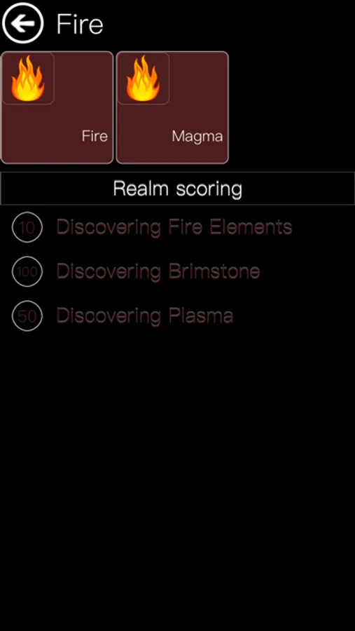 Shows Realms. By tapping on an element tile you can see the reactions where it took part.