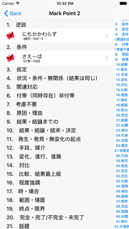 2. Collect all the JLPT N2 article sentence patterns, organized in an easy-to-understand way, with a detailed description of the sentence pattern, no grammatical terms beyond the scope of learning. Easy one-handed operation for efficient learning.