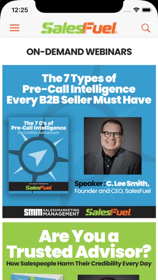 SalesFuel Mobile also gives you on-demand webinars from Amazon bestselling author C. Lee Smith and new insights for building revenue every business day.