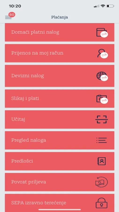- krediti (pregled stanja, prometa, povijest transakcija, jednostavna mjesečna uplata na kredit)