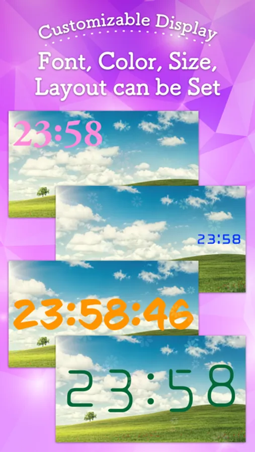 You can change the design of the clock face by setting the font and background. Enjoy customization.