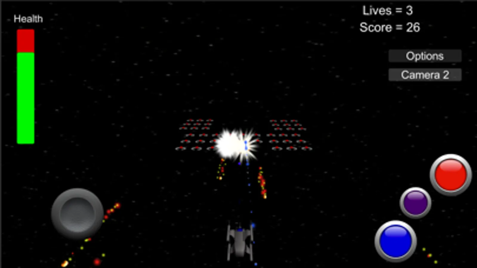 The year is 3030 and aliens are attacking our universe. All of your squadron’s ships have been destroyed and you’re the last defense to stop the aliens from taking over the universe. Your mission is to destroy all invading alien ships and to save mankind.