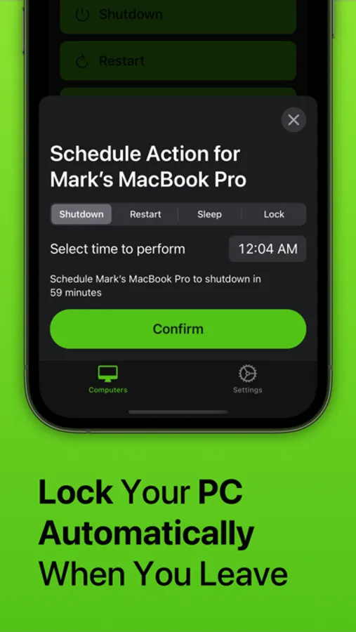 Off is fully compatible with Apple's Shortcuts app. With this, you can design your own automation routines that combine Off's ability to control your computers with any other action available through Shortcuts. For example, you could create a 'Finished Work' routine that turns off your office lights and shuts down your computer at the same time.