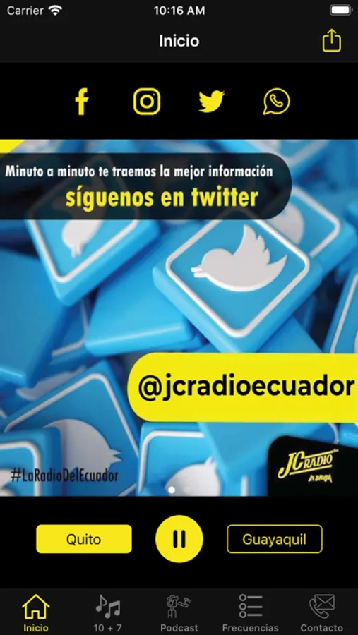 App para streaming de audio de JC Radio La Bruja, La Radio del Ecuador