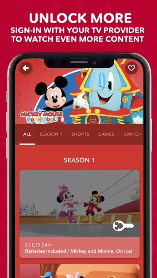 - UNLOCK MORE: See keys throughout the app? Sign in with your TV provider** to unlock episodes, Disney Channel Original Movies and watch live tv.