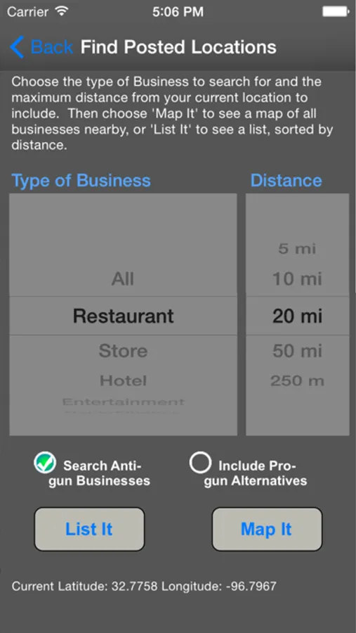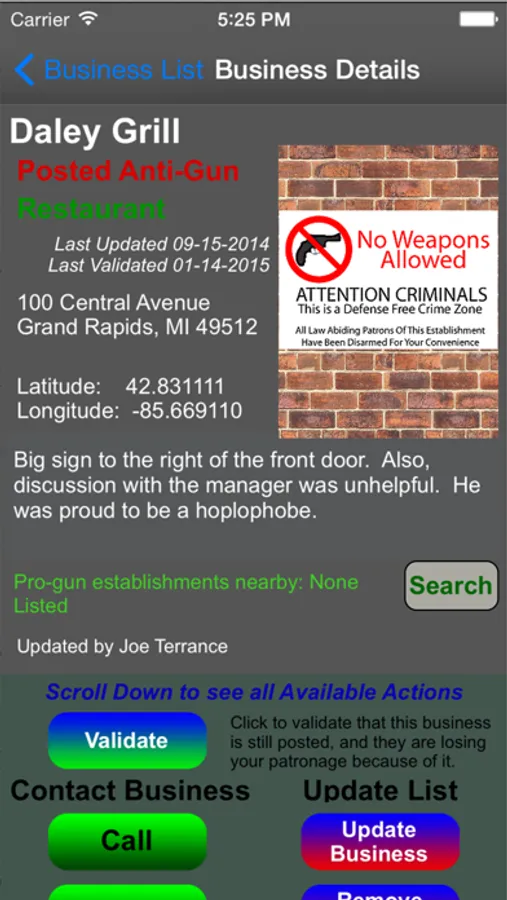 The app also includes the option to add pro-gun alternatives that do not prohibit carry. Search for pro-gun substitutes to the anti-gun businesses. Easily add new ones to the list every time you experience firearm-friendly (or neutral) service.