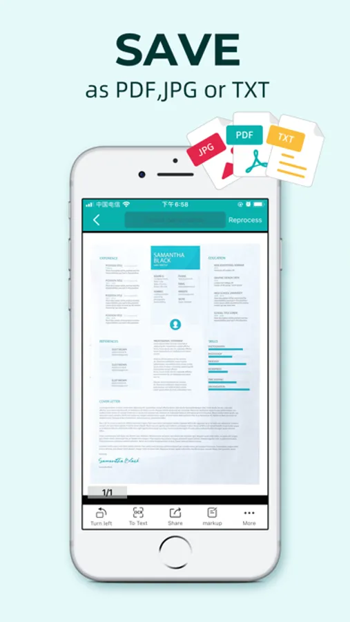 *Adopting advanced and fast algorithm, Scanner App use Advanced color processing algorithms remove shadows, correct perspective and distortion, making your scans as readable as possible.