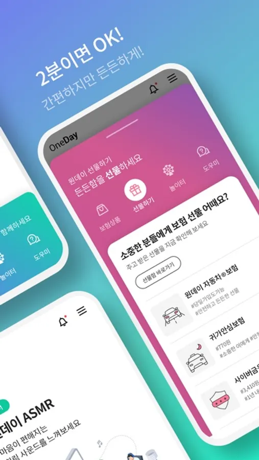 - 가족과 친구들에게 보험을 선물할 수 있는 선물하기 기능