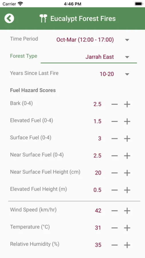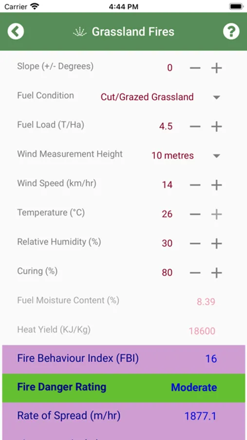Calculate Fire Danger Ratings, Fire Behaviour Index, Rate of Spread, Flame Height and more. Works offline.