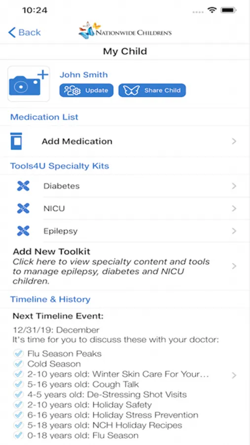 Get immediate access to your children’s medical records, test results and more. The app includes helpful specialty toolkits for kids who have diabetes, epilepsy, frequent headaches or are in a Newborn Intensive Care Unit (NICU). Even families who don’t receive care at Nationwide Children’s Hospital can use the vaccination checklist, growth tracker and get age-appropriate wellness tips for each child.
