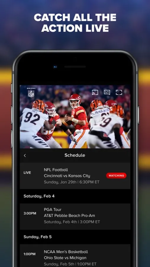 - Watch live sports like NFL on CBS & UEFA Champions League.