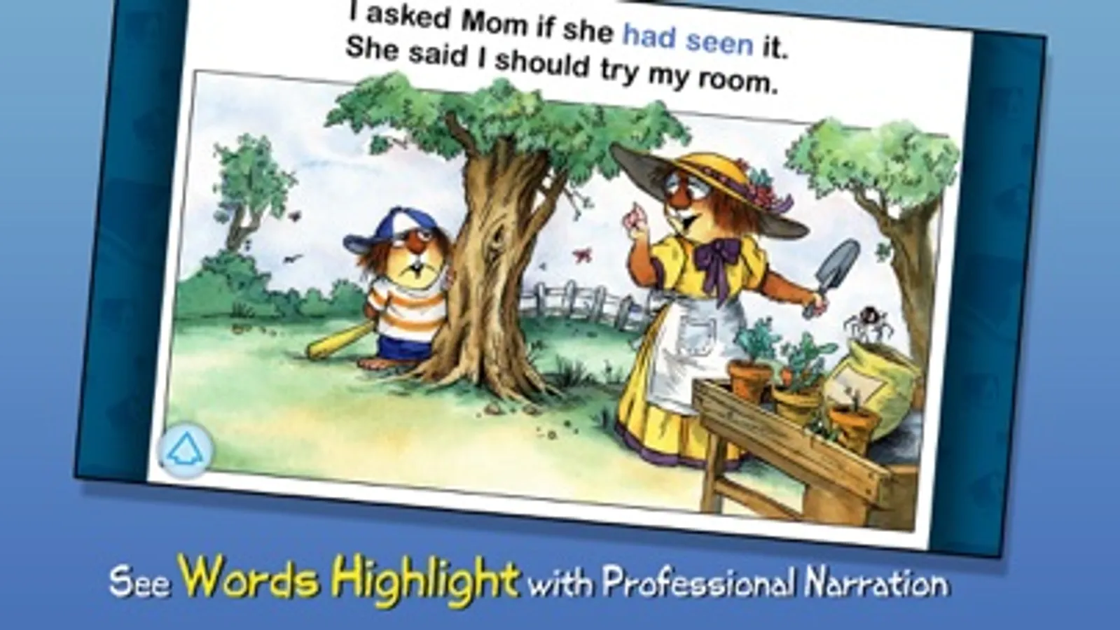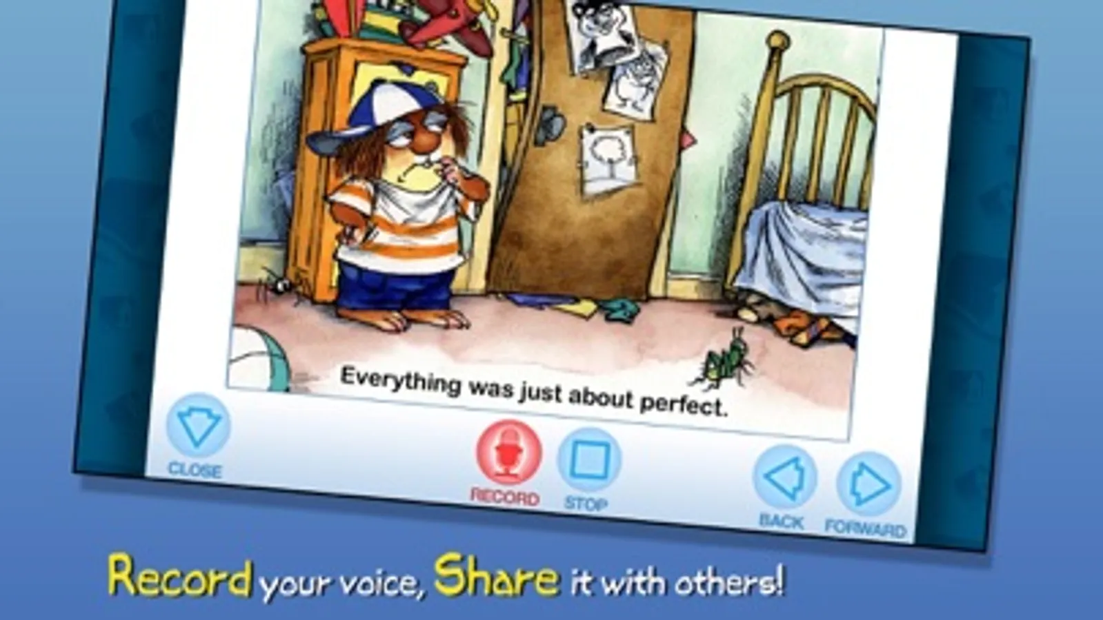Join Little Critter in this interactive book app as he attempts to find his baseball mitt in his room that is "just a mess"! Explore pictures, learn new vocabulary, and personalize the story with your own narration. His unique attempts at cleaning, accompanied with humorous illustrations, will leave you laughing and wondering if he will ever find his baseball mitt.
