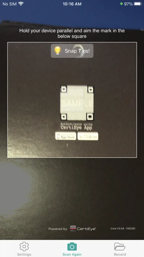 Just aim the four points in parallel to snap Certi-mark. The authentication results can be obtained within a few seconds.