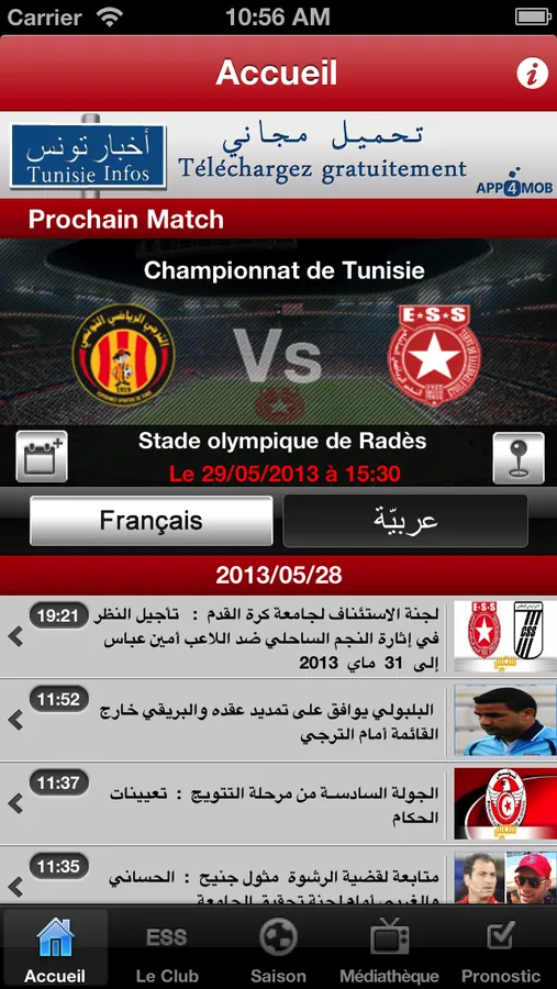 FANS ESS est l'application incontournable pour les fans de l'Etoile Sportive du Sahel, l'un des clubs les plus prestigieux de la Tunisie.