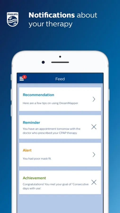 • Receive notifications about your therapy and your DreamMapper compatible equipment;
