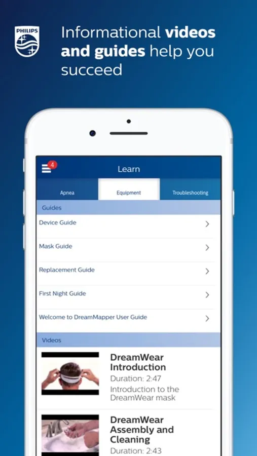 Achieving a great night’s sleep with CPAP therapy happens when you take an active role in your own therapy. That means being in tune with how your therapy and equipment are performing – and how they should be performing – from night to night. DreamMapper is a mobile and web application that keeps you actively informed about your previous night’s therapy – with information like mask fit and therapy hours – so you know you are getting what’s needed for the great night’s sleep you deserve.