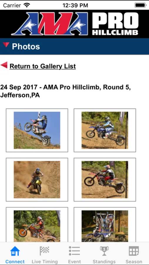 AMA Pro Hillclimb is one of the most traditional forms of American motorcycle racing. Learn about the stars of the sport, get the latest news, check out photo galleries from events, catch Live Timing of every event and check out the latest standings data, all from your mobile device!